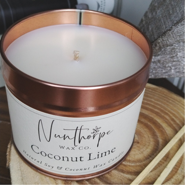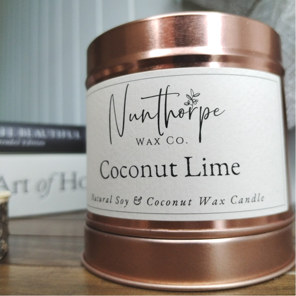 Tinned Candle with lid in beautiful Copper / Rose Gold Colourway