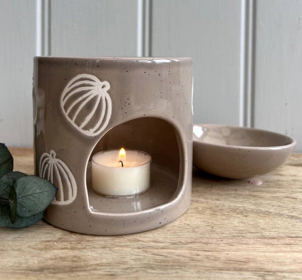 Speckled Mocha / Taupe colourway with glazed finish and Pumpkin design